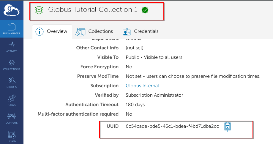 Globus collections each have a unique identifier